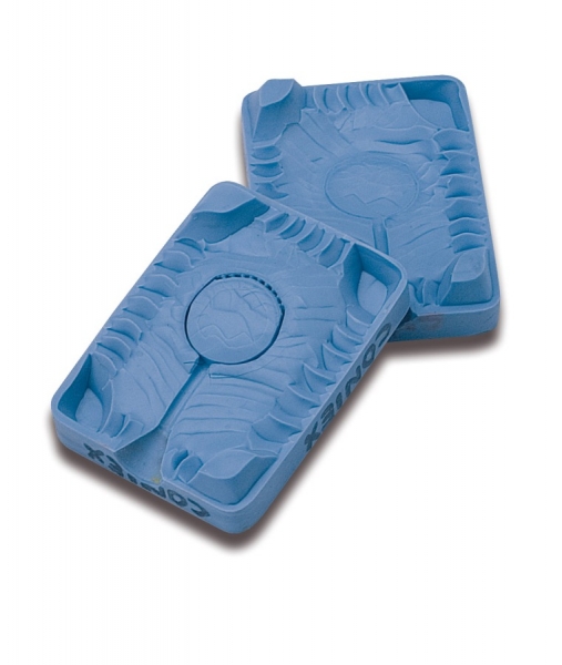 - FÁCIL DE CORTAR: São mais fáceis de cortar que a borracha de cauchu convencional. São muito suaves ao corte com bisturi. Permitem também fazer moldes de 2 ou mais partes usando talco fino como separador - desmoldante.